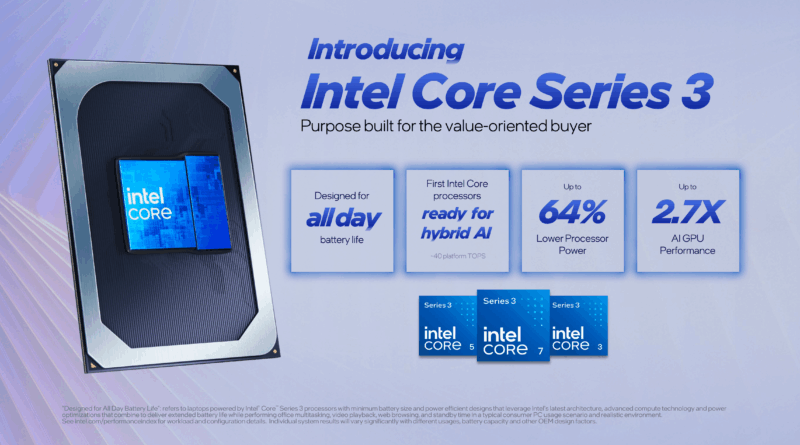 Read MoreIntel is announcing a family of cheaper Panther Lake laptop processors called the Core Series 3 line. They’re built on